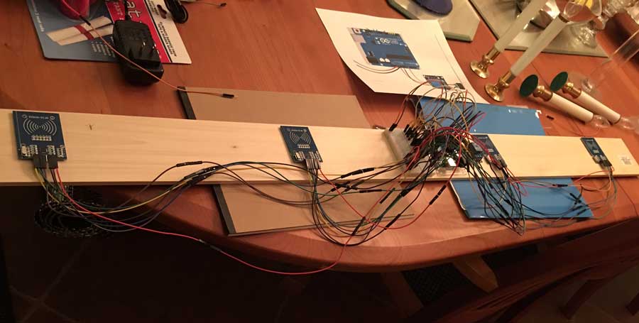 - The wiring connecting the RFID sensors to the Arduino were not shielded. This may have allowed RF interference to affect the puzzle. I believe this was a contributing factor because it was more noticeable in my office where I have a lot of wireless devices versus the escape room which had no wireless devices (other than our phones).